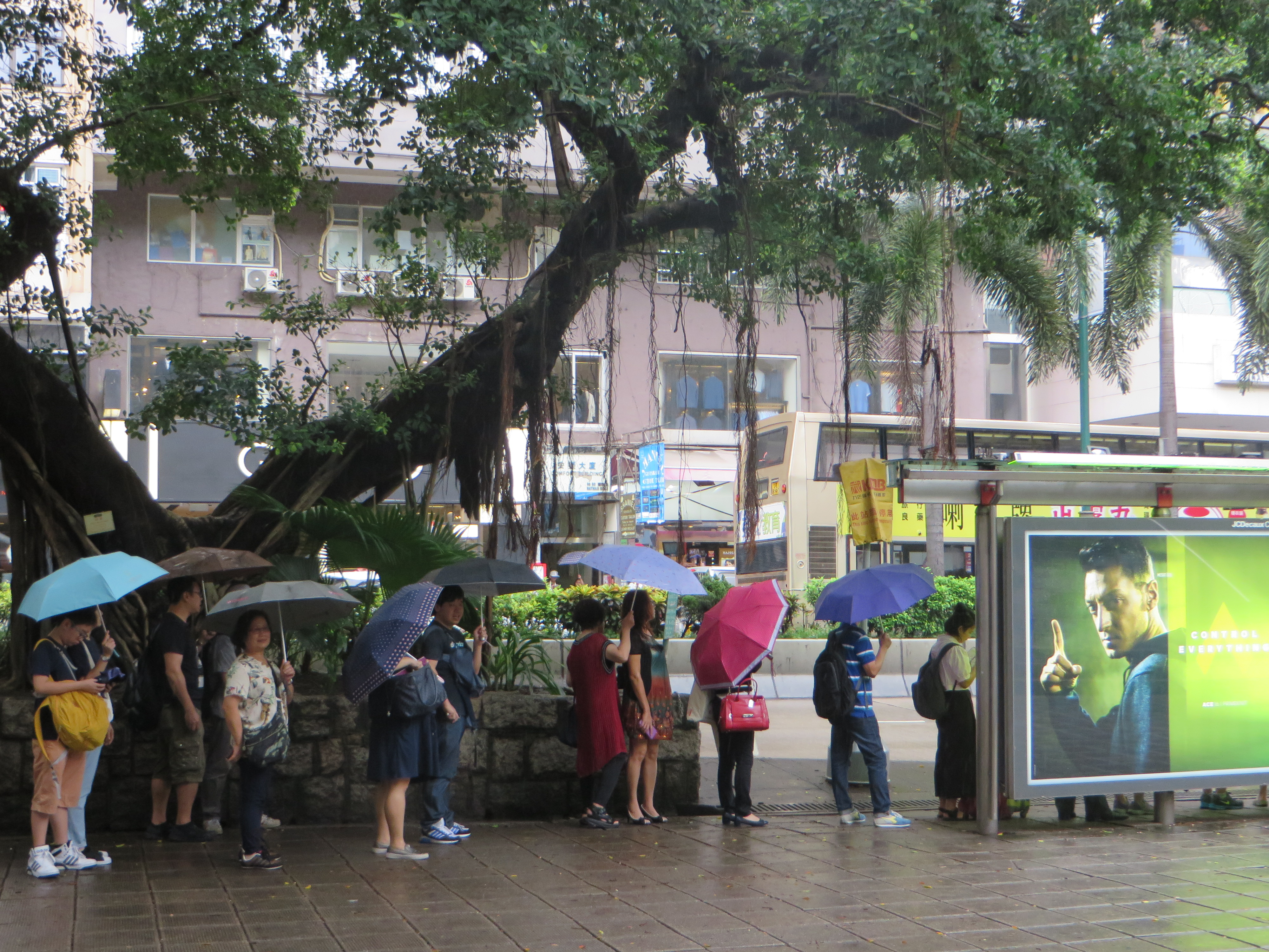 Apropos Schlange: Hongkonger sind sehr gesittet und lieben es Schlange zu stehen. Anfangs habe ich mich noch gefragt ob es hier irgendetwas gratis gibt, wenn ich gut 30 Leute hintereinander auf der Straße stehen gesehen habe. Schnell aber habe ich herausgefunden: Die stehen für den Bus an! An den meisten Bushaltestellen gibt es dafür extra auf dem Boden markierte Flächen. So geht alles schön der Reihe nach, Gedränge adé.